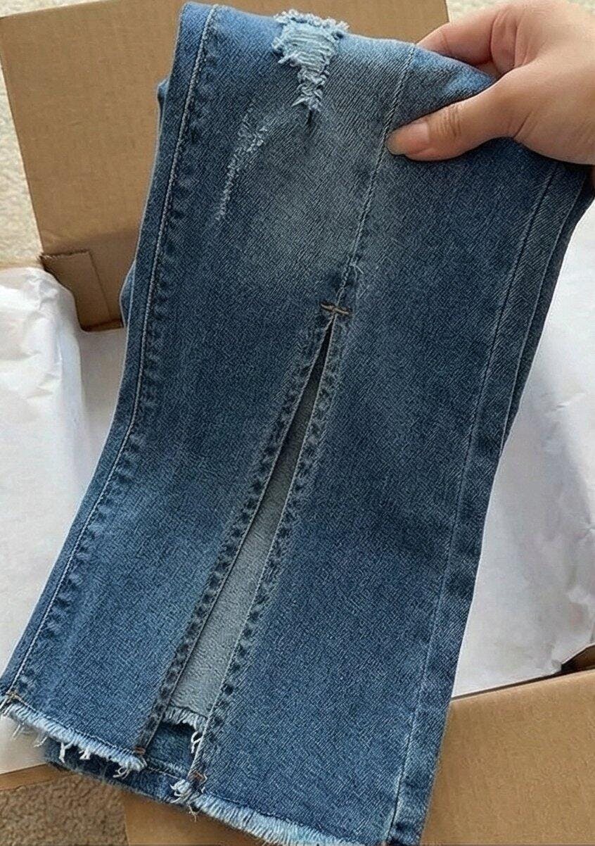 OBSESSED with these! 😍 I’ve been looking for the perfect pair of split-hem jeans and these are it. They arrived little longer then expected but packaged nicely in a box, not just a poly mailer. The fit is incredible—high-waisted and hugs you in all the right places, but has enough stretch to be comfy. The front seam makes my legs look miles long. They look so good with heels because of the flare and the slit. Definitely my new favorite going-out jeans.