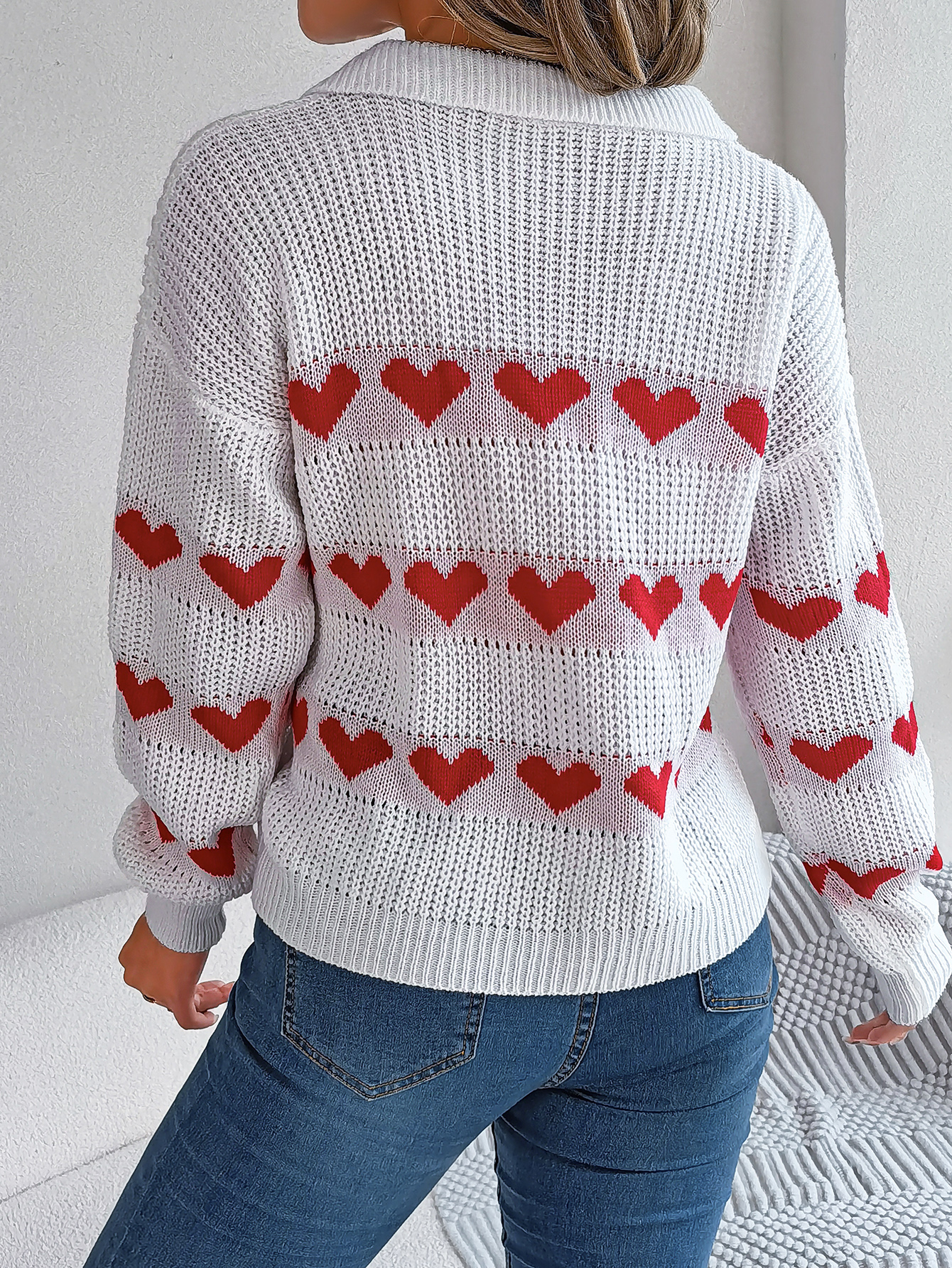 Express your playful side with this V-neck lantern sleeve pullover sweater featuring an adorable heart color block design from Sarah Express. This charming knit combines romantic details with street fashion edge, making it the perfect statement piece for your casual wardrobe.