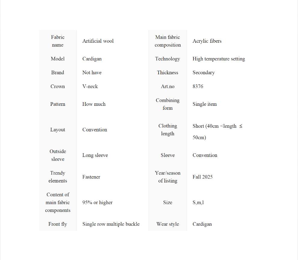 | Wear Style | Cardigan |